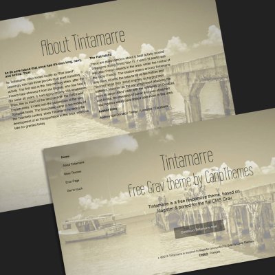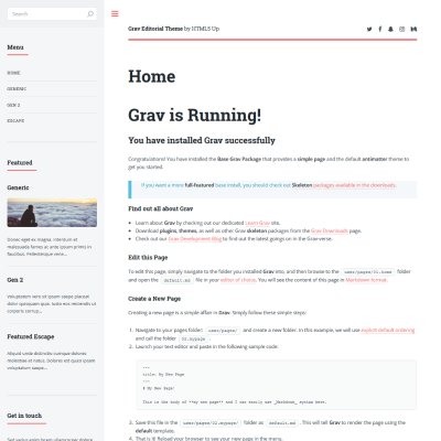 Twenty is a free and responsive theme for Grav. It's a port of Twenty template by HTML5 UP.