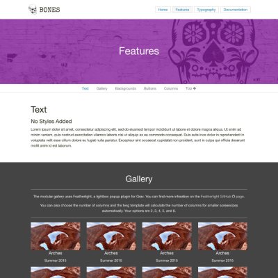 The One-Page Skeleton provides a great example of how to build a modern one-page design with navigation that scrolls to the relevant section of the page. This skeleton uses the Quark theme.
