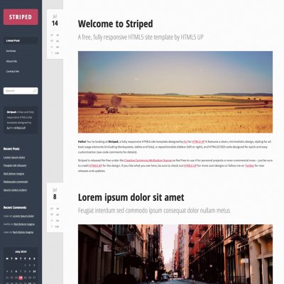 Striped by HTML5 UP, features a clean, minimalistic design, styling for all basic page elements, a repositionable sidebar (left or right), and HTML5/CSS3 code designed for quick and easy customization.